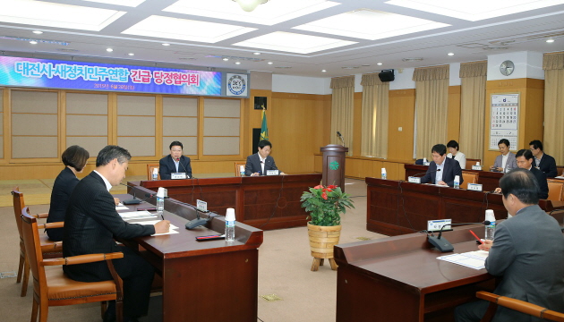 대전시와 새정치민주연합 대전시당은 28일 오후 대전시청 대회의실에서 긴급 당정협의회를 열고 메르스 사태로 인한 피해 극복 대책을 논의했다.