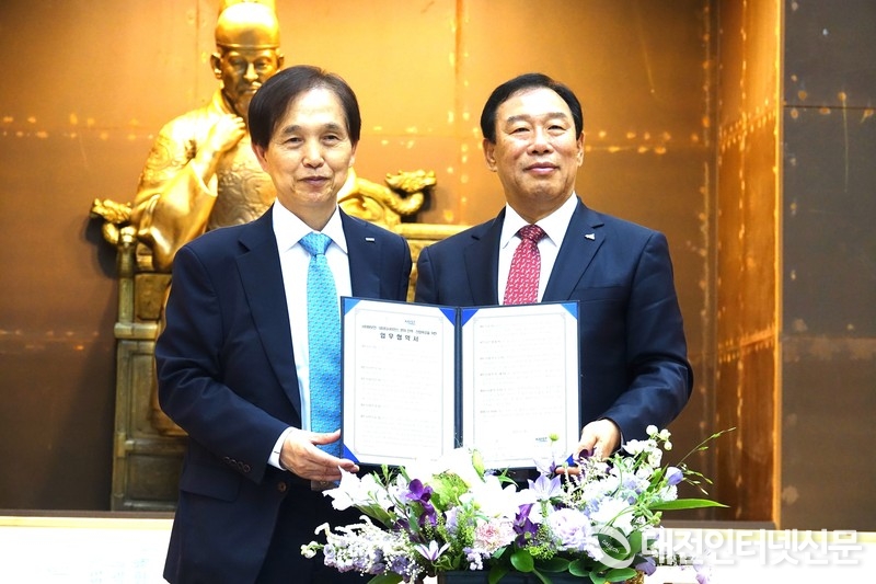 이광형 KAIST총장과 최민호 세종시장이 업무협약 체결 후 기념촬영하고 있다. [사진-대전인터넷신문]