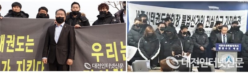 2018년 당시 태권도 협회장 선거와 관련 선거 무효와 정상화를 촉구하는 태권도 관계자들. [사진-대전인터넷신문DB]