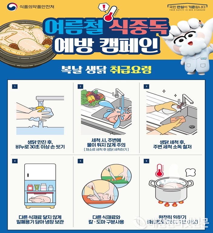 [대전인터넷신문=세종/최대열기자] 한여름 대표 보양식 삼계탕을 조리 시 식재료를 충분히 익히고 철저한 손 씻기 등이 요구되고 있다.