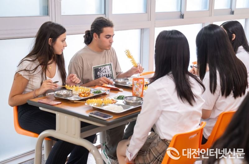 해외 학생들이 세종의 학생들과 K-급식을 체험하고 있다. [사진-세종시교육청]