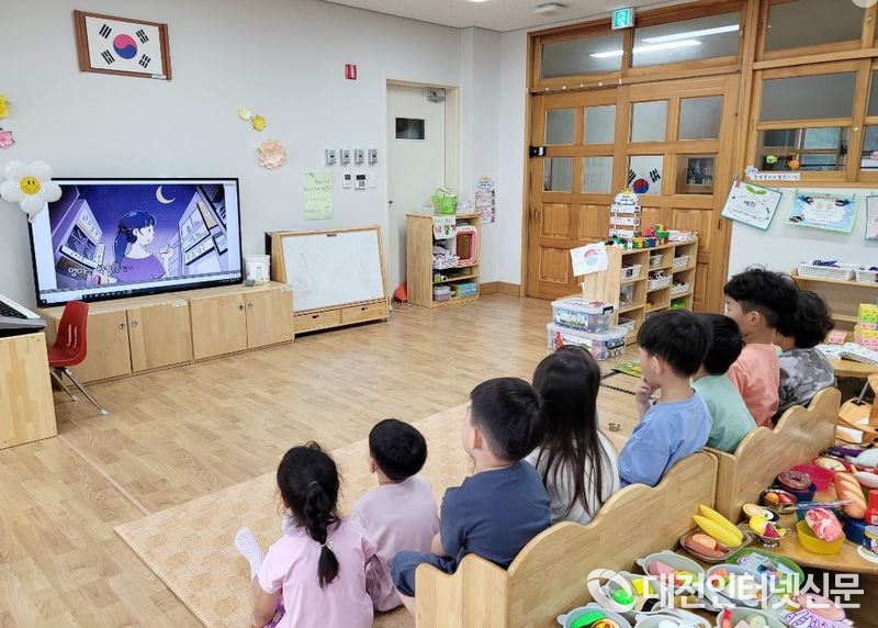 늘봄유 원아들이 교육 영상을 시청하고 있다.[사진-세종시교육청]