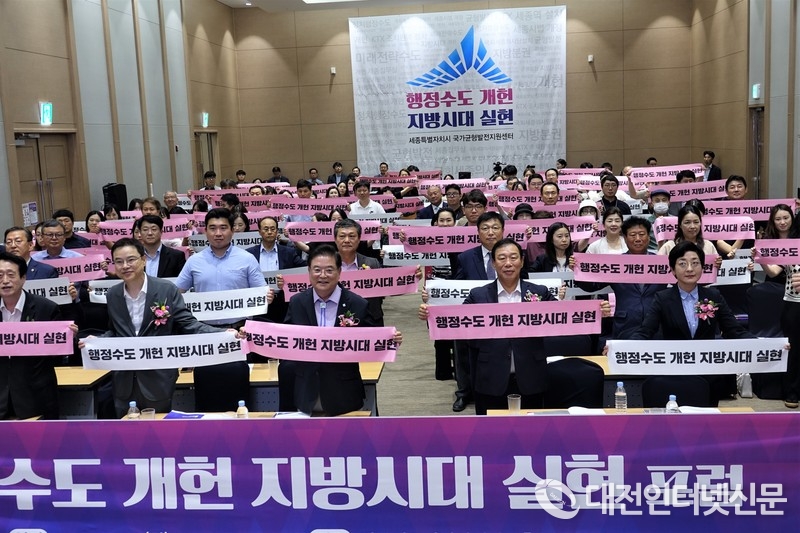 [대전인터넷신문=세종/최대열기자] 25일 세종컨벤션센터에서 최민호 세종시장을 비롯한 이순영 세종시의회 의장, 김영진 대전·세종연구원장 및 시민 300영 명이 참석한 가운데 ‘행정수도 개헌 지방시대 실현을 위한 포럼’이 개최됐다.