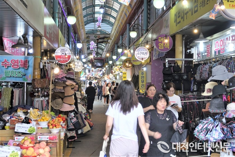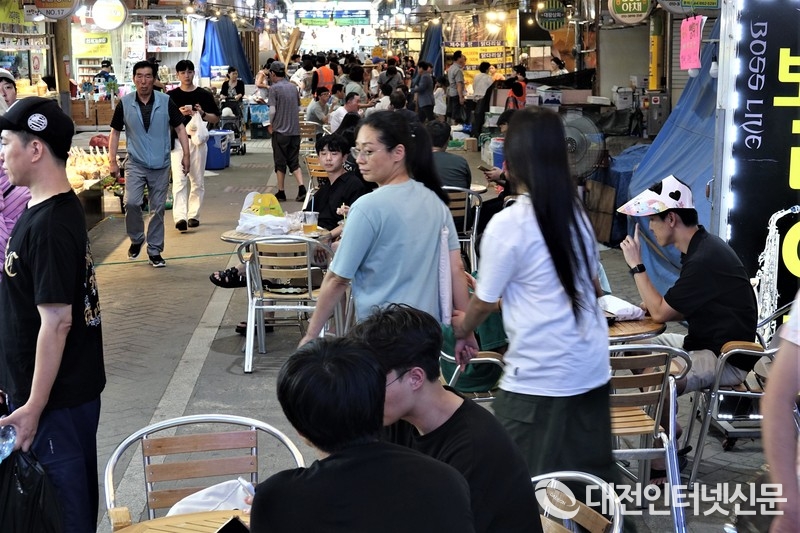 "어머 재들 뭐 먹니" "저희 치킨하고 콜라먹어요" 시장 한복판에 마련된 파치맥 야시장이 전통시장의 정겨움을 더하고 있다. [사진-대전인터넷신문]