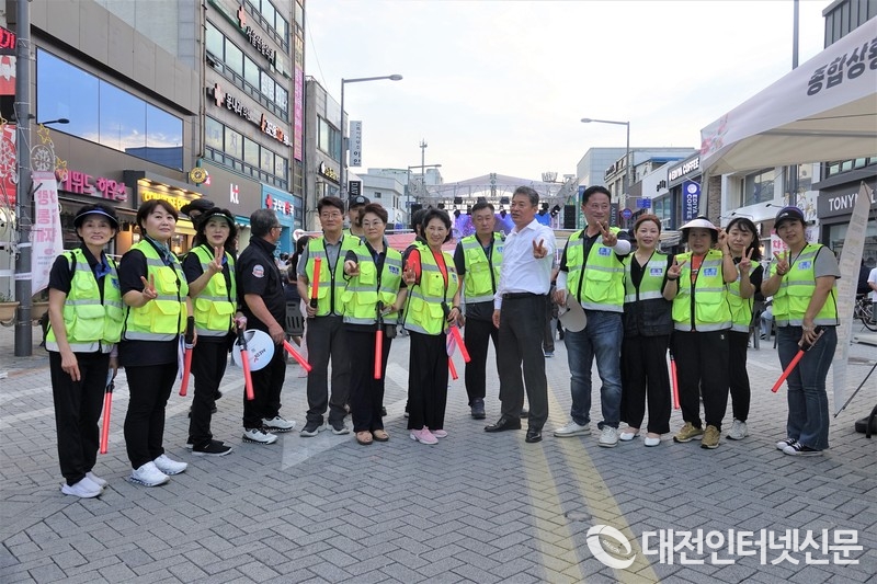 지역구 의원인 김광운 세종시의회 의원이 안전순찰하는 세종시 자율방범대원들을 격려하고 기념촬영 한 컷을 위해... [사진-대전인터넷신문]