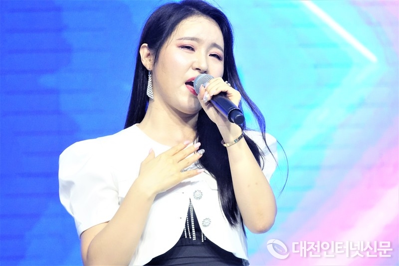 지역 대표가수 조은하양의 열창이 더위에 지친 시민들을 위로하고 있다. [사진-대전인터넷신문]