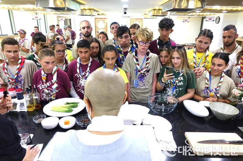 8일 오후 3시 세종 전통문화체험관에서 사찰 전통음식 만들기 체험에 참여한 불가리아 대표단은 생소한 음식에 높은 관심을 보이며 스님의 일거수일투족에 집중하고 체험을 통해 음식을 만들고 시식하며 즐거운 한때를 보냈다.