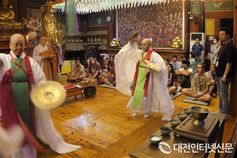 잼버리 불가리아대표단 세종시 영평사에서 '낙화' 체험