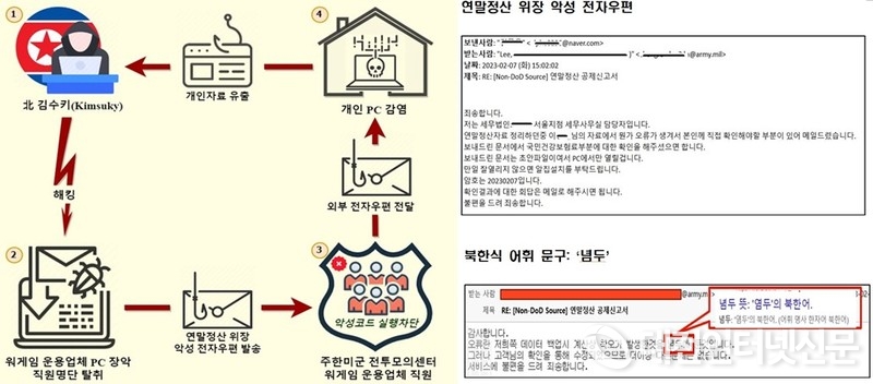 [대전인터넷신문=세종/최대열기자] 경찰청 국가수사본부(안보수사국)는 올해 2월부터 한미연합연습 전투모의실에 파견된 국내 워게임(War Game) 운용업체 직원들을 대상으로 발송된 악성 전자우편 사건을 수사한 결과, 북 해킹조직의 소행으로 확인됐다고 밝혔다.
