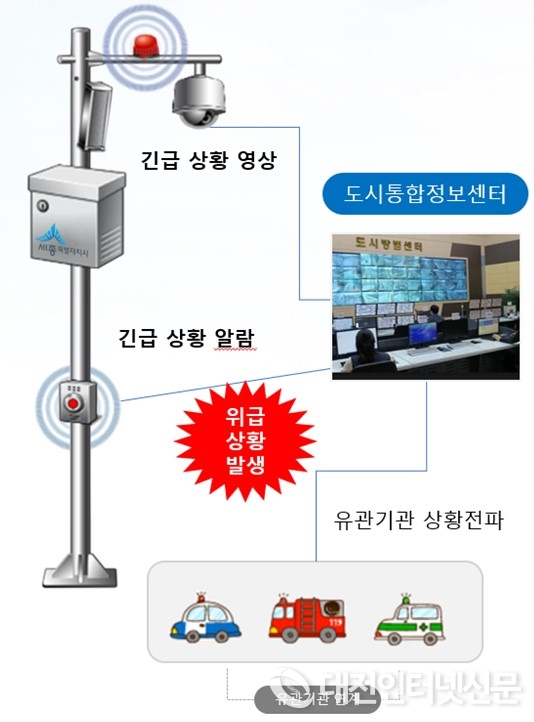 이를 위해 세종시는 행안부 국비 5억 원을 기확보하고 시비(재난 안전관리기금) 12억 원을 투입할 예정이며 모든 CCTV에 비상벨을 구축, 통합관제센터와 실시간 연계로 시민안전을 도모할 계획이다.