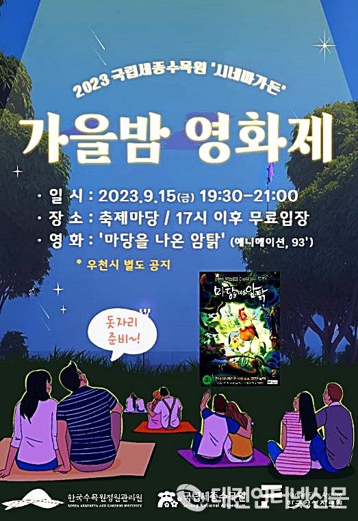 특히 국립세종수목원은 오는 15일에 ‘한국영상자료원’과 협업을 통해 가을밤 영화제 ‘시네마 가든’을 개최할 계획이다. 당일 수목원 잔디마당에서 한국 애니메이션인 베리어프리 영화 ‘마당을 나온 암탉’이 상영되며, 상영 전에는 퍼포먼스 공연이 진행된다.