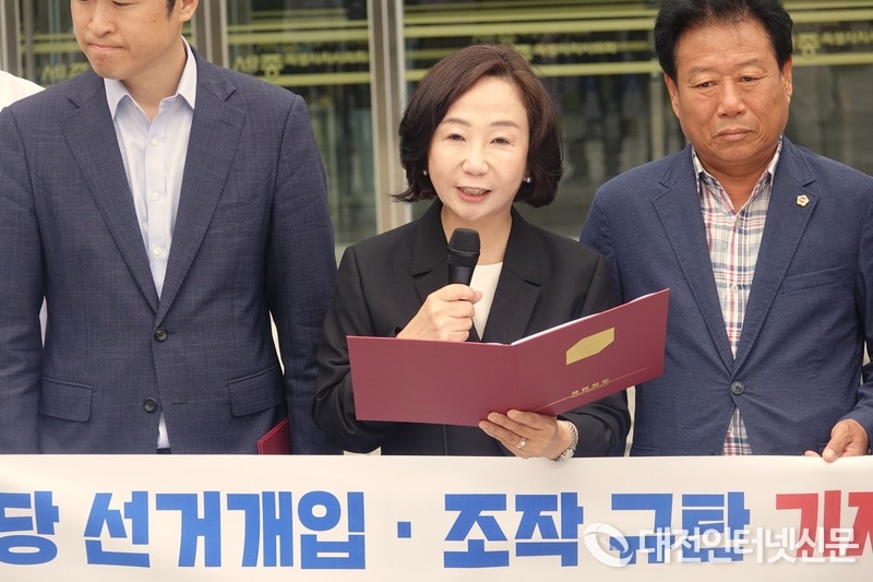 이 자리에는 송아영 시당위원장, 류제화 을지구 위원장, 김충식 세종시의회 부의장, 이소희 의원, 김동빈 의원, 최원석 의원, 윤지성 의원을 비롯한 당 관계자 20여 명이 참석 대선 공작을 강력히 규탄했다.