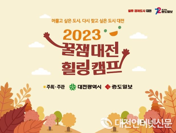 [대전인터넷신문=대전/이향순 기자] 대전시가 가을 캠핑 시즌을 맞아 대전 관내 주요캠핑장 및 관광지를 연계한 숙박형 캠핑프로그램 ‘2023년 꿀잼대전 힐링캠프’ 2회차를 오는 16일 개최한다.