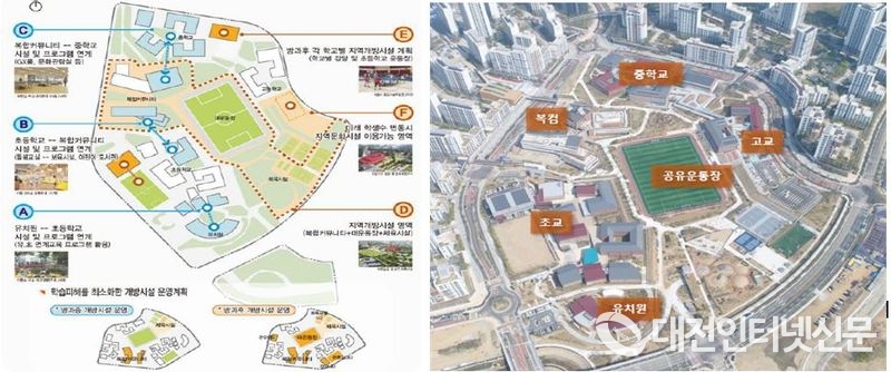 왼쪽부터 복합커뮤니티단지 시설별 연계방안, 오른쪽 복합커뮤니티단지 조성현황[사진-행복청]
