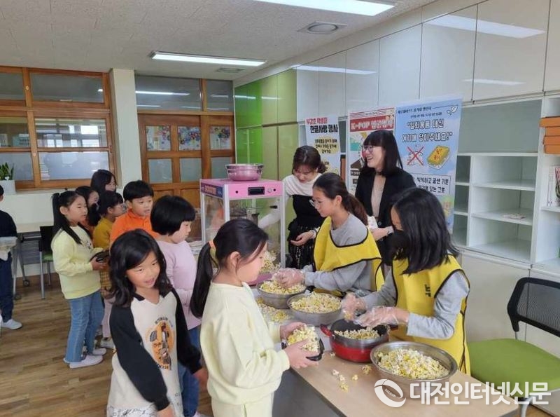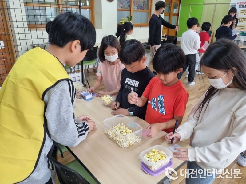 영화감상과 영어가 많이 사용된 한국 가요곡을 아름다운 한글로 개사하여 제출한 학생들에게 각 가정에서 가져온 용기에 팝콘을 제공했다.[사진-세종시]