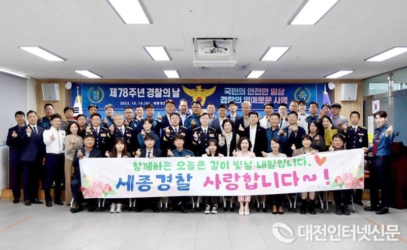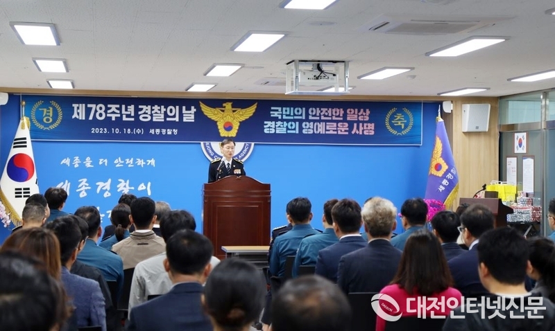 [대전인터넷신문=세종/권혁선 기자] 세종경찰청은 18일 오전 5층 대회의실에서 전 직원이 참석한 가운데, 제78주년 경찰의 날 기념식을 갖고 국민의 안전한 일상을 지키는 경찰로 거듭날 것을 다짐했다.