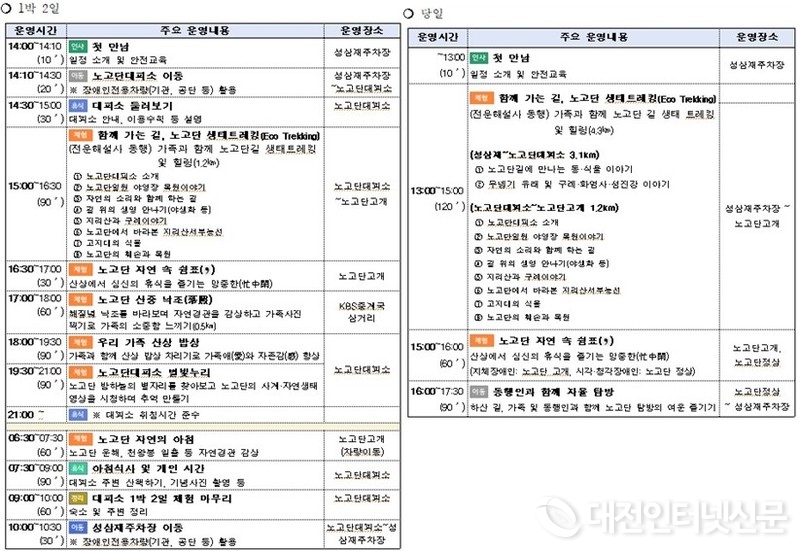 당일형은 11월 10일 시각장애인 5명과 가족포함 총 10명을 대상으로 운영하고, 11월 17일에는 청각장애인 5명과 가족포함 총 10명을 대상으로 운영한다.