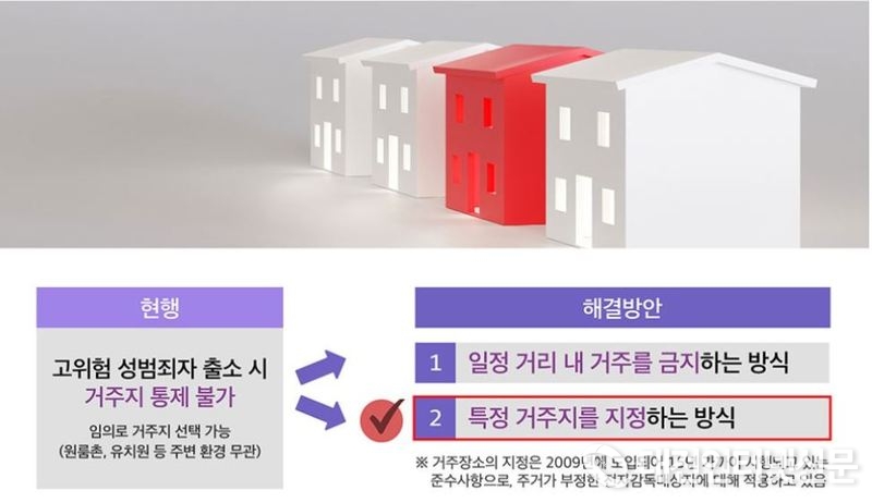 제·개정안은 고위험 성범죄자에 대해 거주지를 제한하고 성충동 약물치료를 확대하여, 고위험 성범죄자가 출소할 때마다 반복되었던 거주지 논란을 줄이고 국민들을 성범죄로부터 더욱 두텁게 보호하려는 것으로 그동안은 고위험 성범죄자들의 출소 후 거주지 통제를 할 수 없어 이들의 거주지 인근 지역주민들의 우려와 불안감을 떨칠 수 없었지만 이번 개정안으로 인근 주민들의 불안감이 크게 해소될 전망이다.