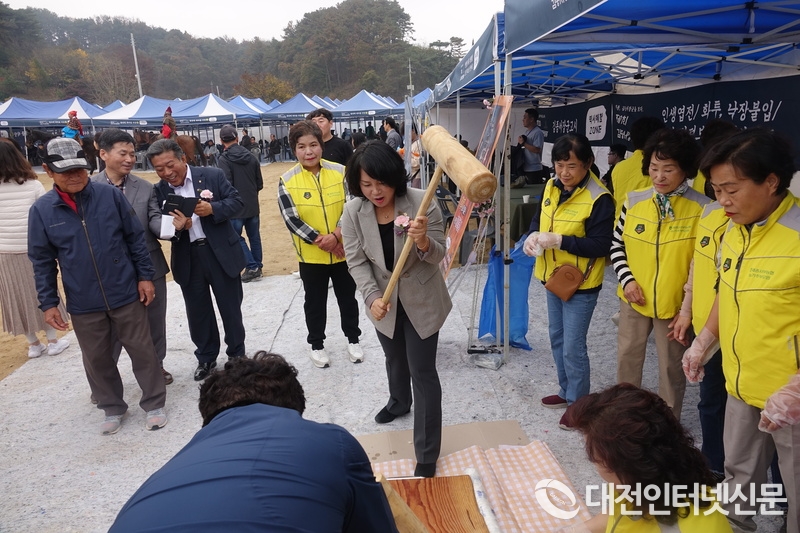 박란희 세종시의회 부의장의 떡치는 모습이... [사진-대전인터넷신문]