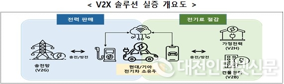 이에 따라 현대차·기아는 ‘전기차 활용 양방향 충·방전 서비스(V2X)’를 실증한다. 전기가격이 낮을 때 차에 전기를 충전해두었다가 높을 때 계통(V2G), 가정(V2H), 건물(V2B)에 공급하는 것이다. 가정에 전력을 공급하는 것은 국내최초의 사례다. 현행 전기사업법은 전기차를 매개로 한 전력판매의 정의·기준을 두고 있지 않아 발전자원의 지위를 부여하는 특례를 적용했다. 승인기업은 전국 130개 장소에서 관련기능이 탑재된 전기차 110대를 통해 V2X의 경제성과 안전성을 검증한다. 사용자는 전기차 실질구매비용 절감, 자동차 업계는 전기차 보급 확산, 전력시장은 피크완화의 1석3조의 효과가 기대된다.