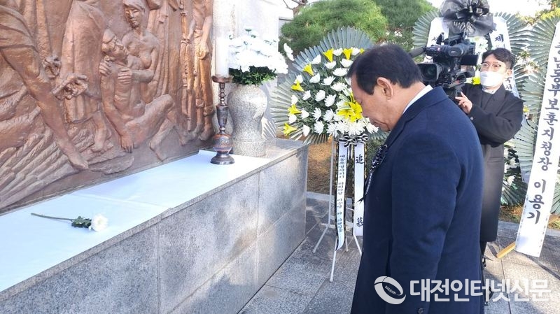 최민호 세종시장이 순국선열의 날을 맞아 국권 회복을 위해 헌신한 순국선열에 묵념을 하고 있다.[사진-대전인터넷신문]