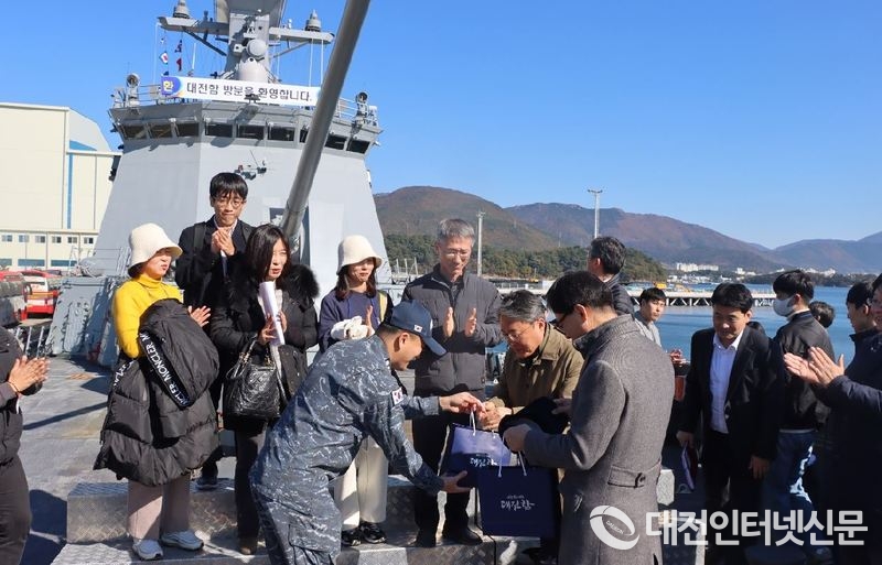 이석봉 대전시 경제과학부시장은 “이번 대전함 방문이 공직자는 물론 지원 민방위 대원과 자율방재단의 안보의식을 한층 높이는 계기가 됐길 바란다”라며 “적절한 시기에 대전함 장병들을 대전시로 초청해 시티투어 등 다양한 교류활동을 추진하겠다”라고 말했다.