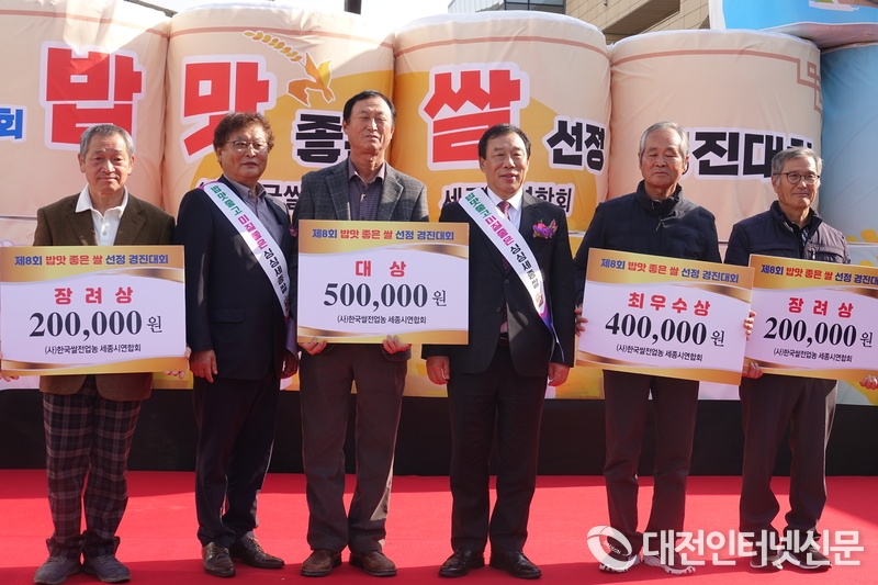 세종시 밥맛 좋은 쌀 경진대회는 우리 지역 쌀 경쟁력을 강화하고 소비 촉진을 위해 열리는 행사로 올해 대상에는 금남면 송상두 씨가, 최우수상에는 조치원읍 채순문 씨가, 우수상에는 연기면 신동호 씨가, 장려상에는 조치원읍 홍덕표 씨가, 장려상에는 부강면 한인희 씨가 선정, 각 50만 원, 40만 원, 30만 원, 20만 원의 상금과 상장을 받았다.