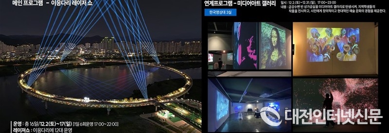 또한, 개막식 당일인 2일과 3일 22일, 23일, 24일, 25일 오후 17시부터 22시까지는 환상적인 레이저가 밤하늘을 수놓을 ‘이응 다리 레이저쇼’가 펼쳐지고 축제 기간 한 달간 17시부터 21시까지는 시청 앞 공실 상가 공간을 미디어아트 갤러리로 탄생시켜 지역 학생 예술가들의 작품을 전시하고 시민에게는 창의적이고 현대적인 예술 문화 향유를 제공할 계획이다.