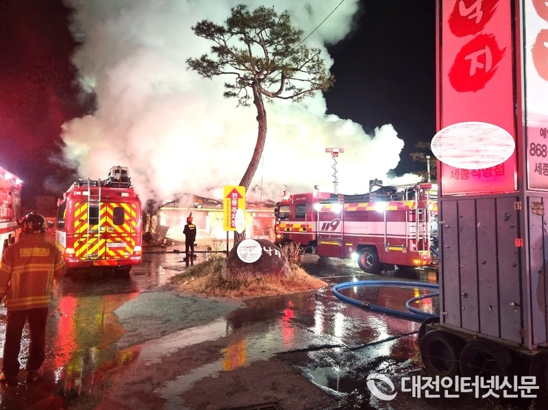 [대전인터넷신문=세종/최대열기자] 1일 오후 21시 08분경(최초 신고접수) 세종시 장군면 도계리 202-11 소재 낙지 전문점에서 원인 미상의 화재가 발생, 신고접수 2시간 27분여 만에 완전히 진압됐다.
