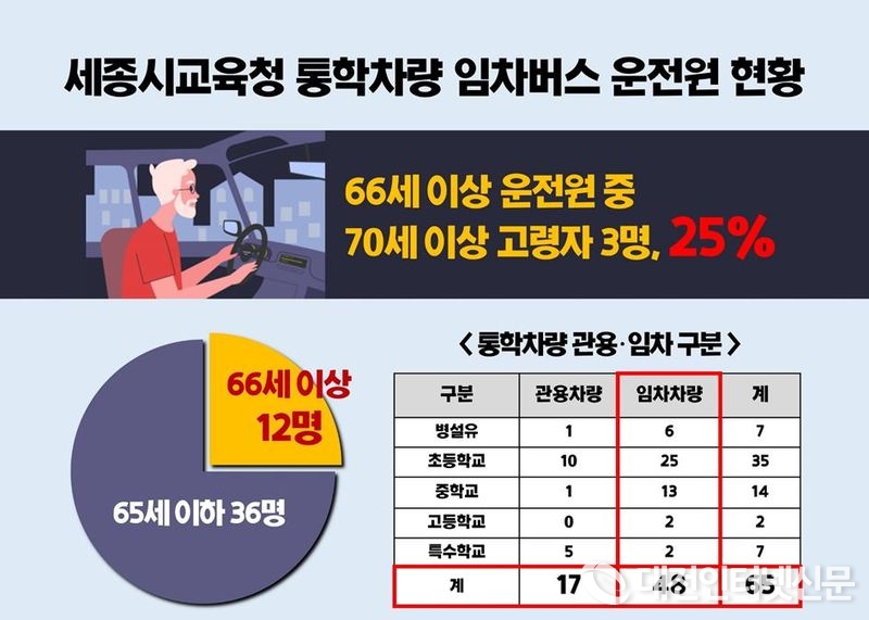 특히 통학차량 중 임차차량 관리에 대해 강조하며, “교육청이 제출한 자료에 따르면 현재 통학차량 임차버스 운전원 총 48명 중 25%인 12명이 모두 66세 이상으로 고령운전자에 해당하고, 이들 4명 중 1명은 70세 이상 운전자에 해당한다”고 우려를 표했다.