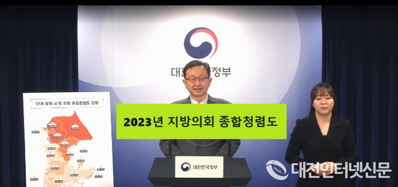 [대전인터넷신문=세종/최대열 기자] 2023년도 지방의회 종합청렴도와 청렴 체감도가 행정기관과 공직 유관단체에 비해 낮은 것으로 조사되면서 지방의회의 자구책 마련이 시급한 것으로 나타났다.