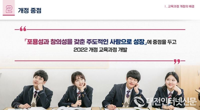 [대전인터넷신문=세종/권혁선 기자] 세종시교육청은 2022 개정 교육과정이 학교 현장에 안정적으로 자리 잡을 수 있도록 지원하기 위해 ‘2022 개정 교육과정 총론 영상’을 본격적으로 제작한다.