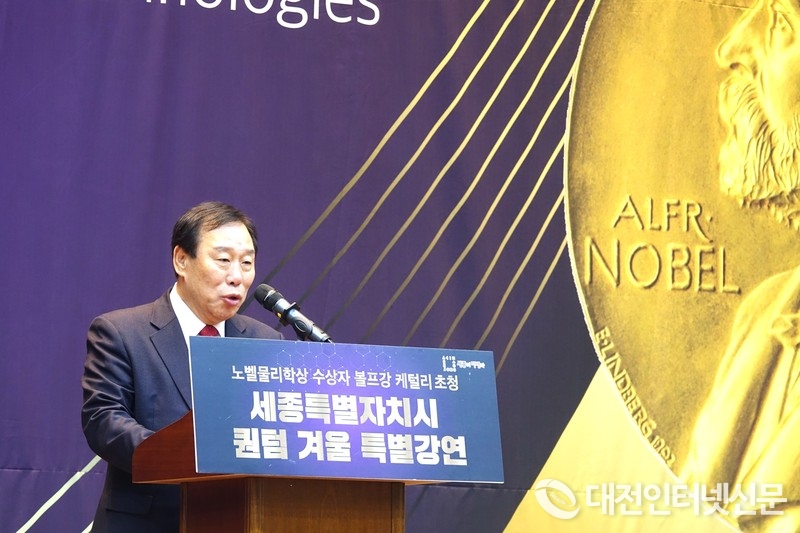 특강에 앞서 최민호 세종시장이 환영사하는 모습. [사진-대전인터넷신문]