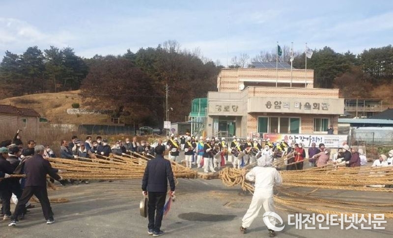 연서면 용암리 마을회관 앞에서 무형문화재 제2호인 ‘용암강다리기’ 공개행사 장면[사진-세종시]