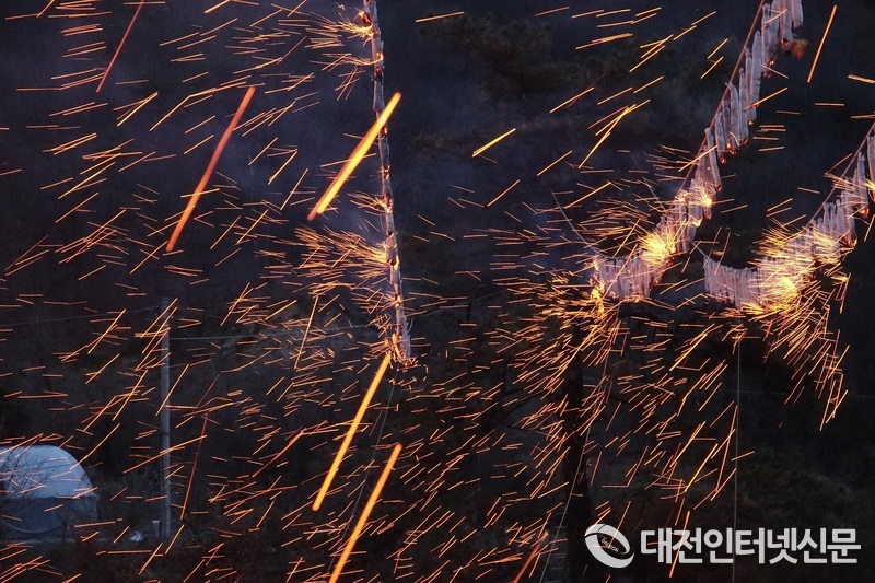 [대전인터넷신문=세종/최대열기자] 200년 이상 구전으로 전해 내려온 세종시 등곡1리 낙화놀이가 대보름을 맞아 23일 등곡리 밤하늘을 화려하게 수 놓았다.