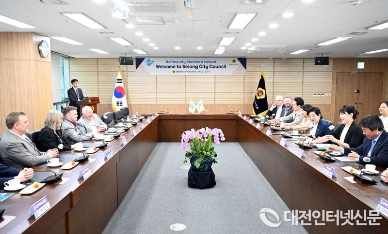 [대전인터넷신문=세종/권혁선 기자] 세종시의회는 1일 세종시의회 의정실에서 영국 북아일랜드 수도 벨파스트시(시장 라이언 머피) 대표단 일행을 공식 접견하고 상호 교류 및 협력 방안에 대해 논의했다.