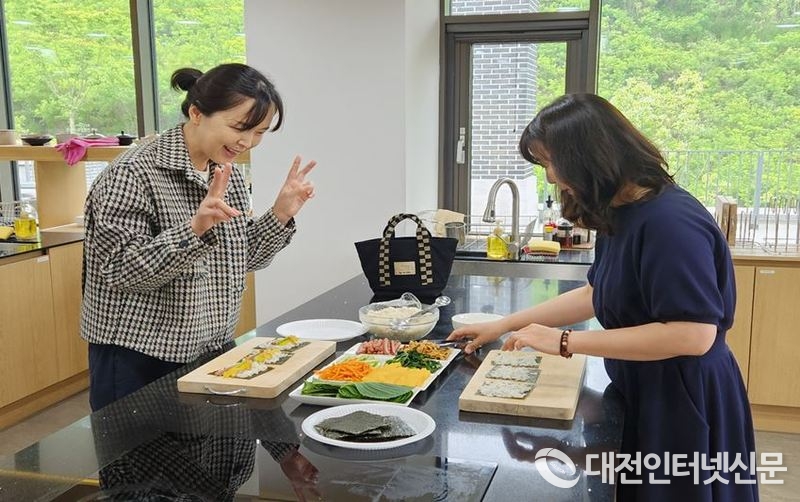 세종 전통문화체험관에서 봄나들이 김밥 만들기 체험중인 참가자의 모습. [사진-세종 전통문화체험관]