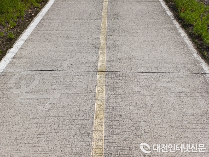 시의회 자료에 따르면, 도심지를 벗어난 자전거 구간은 포장 상태와 관리상태가 비교될 만큼 확연히 차이가 났다. 아스팔트가 아닌 콘크리트 자전거길이 펼쳐지거나, 금강 남단(반곡동~소담동 주변) 자전거 아스팔트 도로마저 마모돼 자갈이 떨어지는 상태였다. 도색 상태도 몇 년째 관리를 안한 듯 노란 중앙선이 흰색에 가깝게 색이 바랬고, ‘천천히’와 같은 도로 안전 글자 표식과 ‘보행자 건널목 실선’은 보이지 않는 수준이었다.