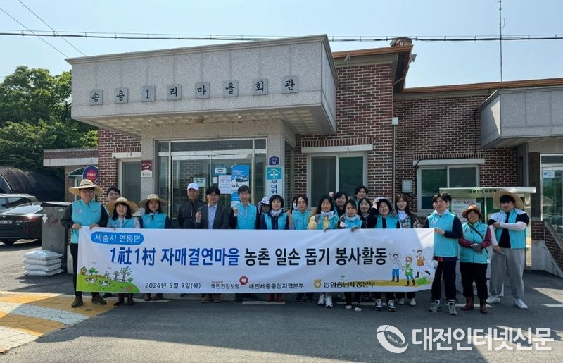 [대전인터넷신문=세종/권혁선 기자] 국민건강보험공단 대전세종충청지역본부는 지난 9일, 가정의 달을 맞아 1사 1촌 자매결연마을 일손 돕기 봉사를 실시했다.
