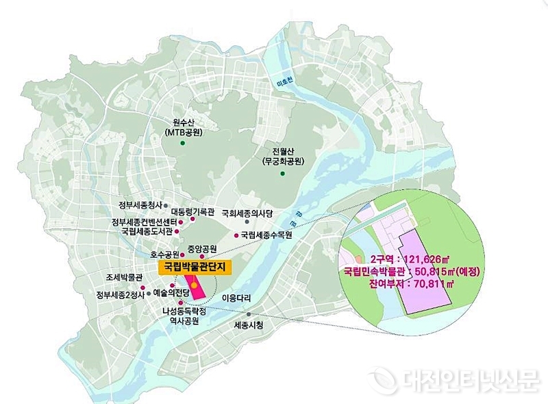 [대전인터넷신문=세종/권혁선 기자] 행복청이 박물관단지 2구역에 건립이 가능한 문화시설을 파악하기 위해 중앙행정기관과 공공기관 등을 대상으로 5월 17일부터 6월 5일까지 입주희망 수요조사를 실시한다고 밝혔다.