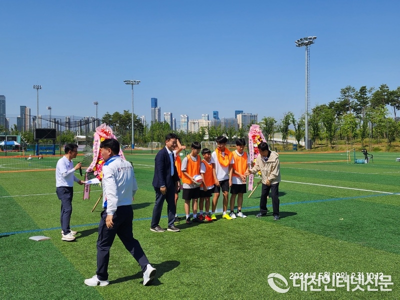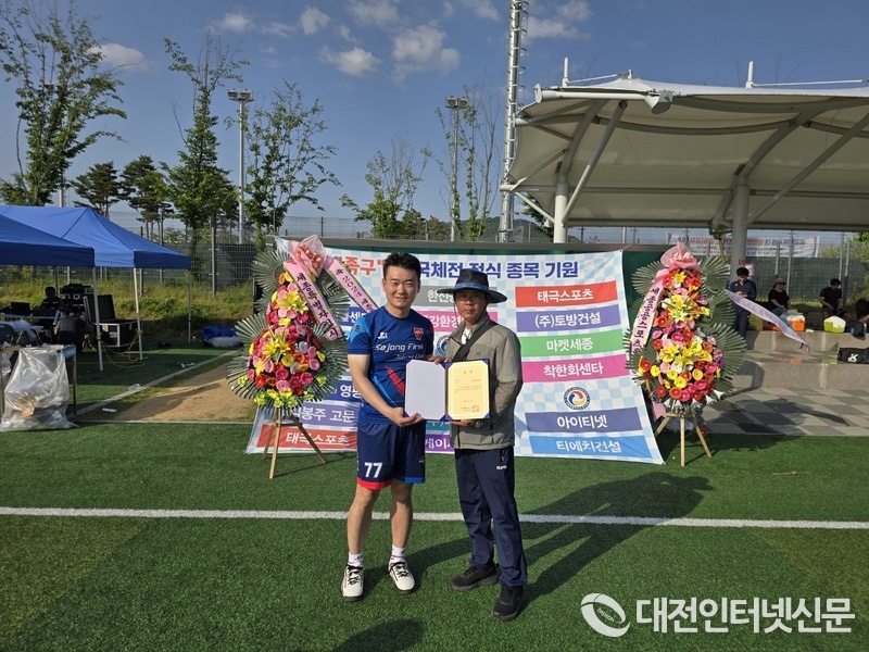 한편, 축사에 나선 최교진 교육감은 축사 후 대회에 참가한 한솔중학교 선수에게 족구 공인구를 선물하면서 격려했고 윤성일 세종시 족구협회장은 특별 금일봉을 전달하면서 격려했다.