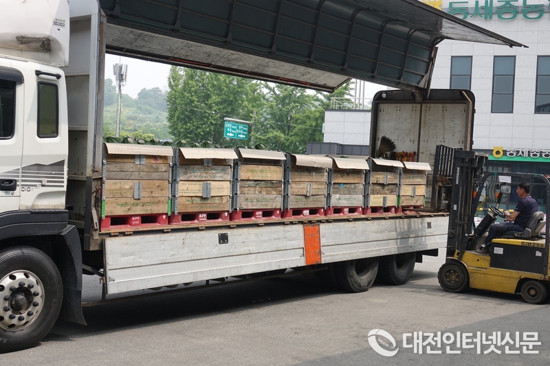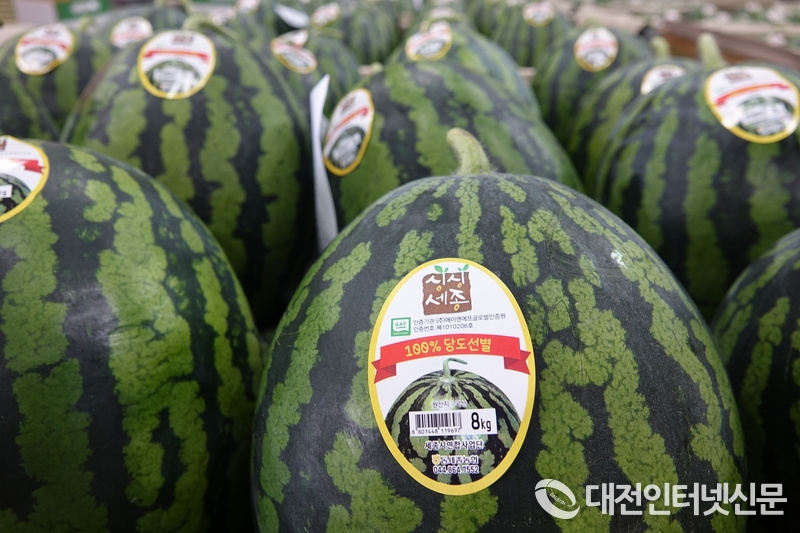 [대전인터넷신문=세종/최대열기자] 세종시 우수농산물 공동브랜드인 ‘싱싱세종수박’이 24일 첫 출하를 시작했다.