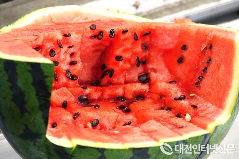 당도 11.5 브릭스의 수박이 입맛을 다시게 하고 있다. [사진-대전인터넷신문]