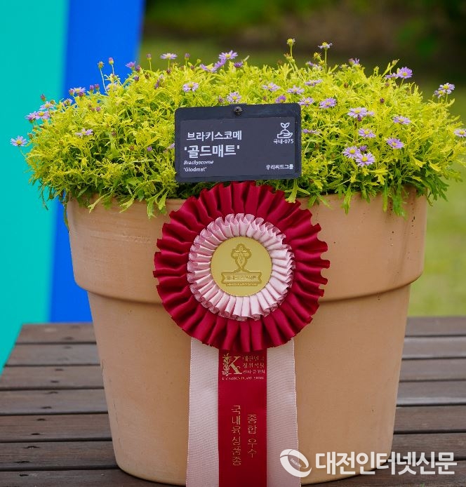우리씨드가 출품한 브라키스코메 품종인 ‘골드매트’가 국내육성품종 분야 올해의 정원식물로 선정됐다.[사진-한수정]