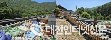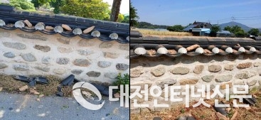 개암사 종무소 담장 균열 및 기와 파손. [사진-국가유산청]