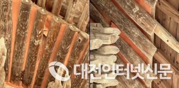 내소사 대웅보전 앙토 탈락 및 서까래 위치 변동. [사진-국가유산청]