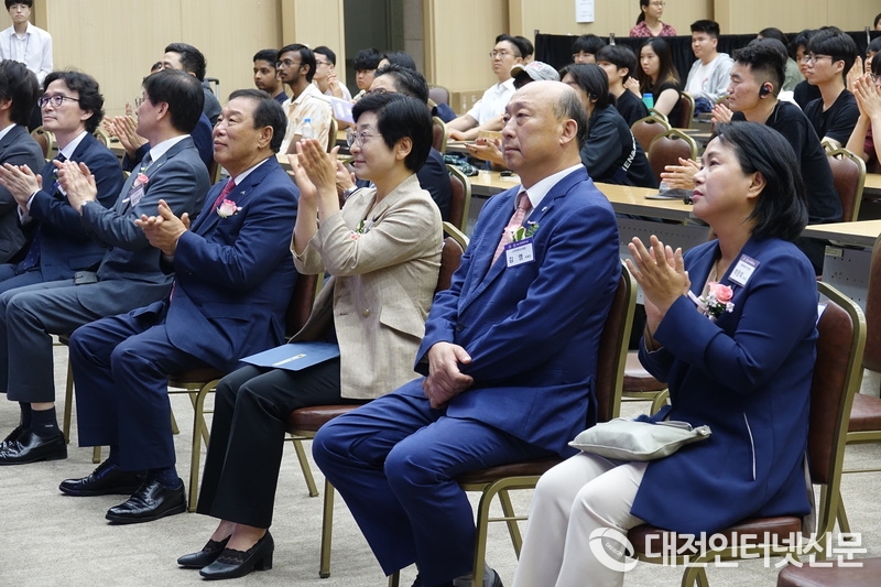 ‘2024 핵테온 세종’ 폐막식에 참석한, (우부터) 박란희 부의장, 김영 고려대 세종캠퍼스 부총장, 이순열 의장, 최민호 시장. [사진-대전인터넷신문]