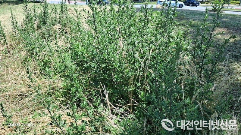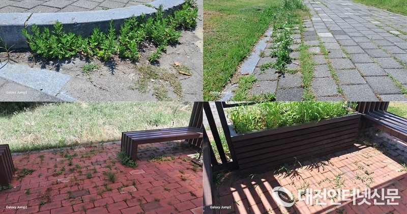 잡초가 우거진 채 행정이 미치지 않는 시청 앞 공원을 두고 국제정원도시 박람회에 대한 우려가 제기되고 있다. [사진-대전인터넷신문]