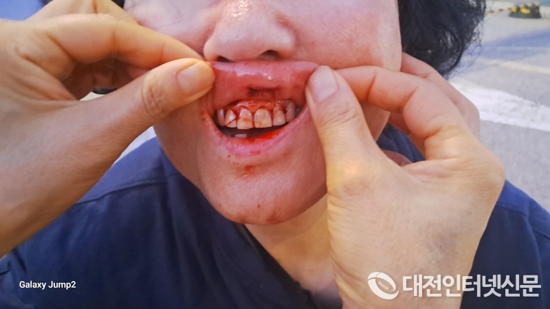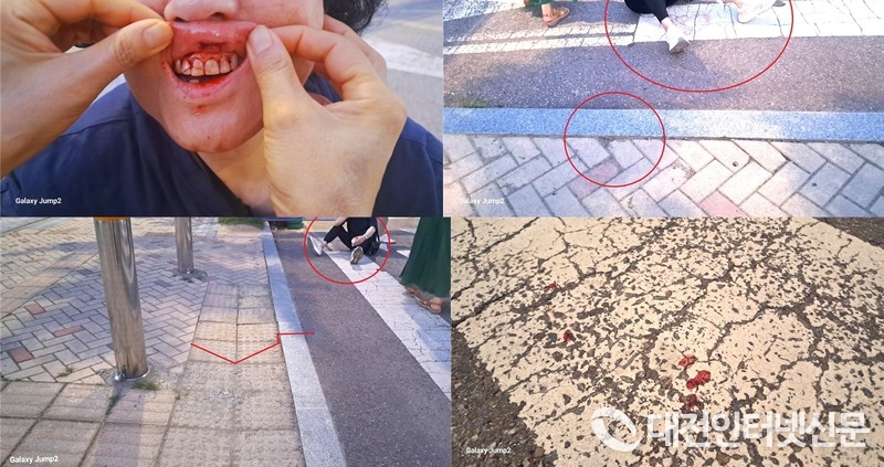 부상을 입은 여성분과 사고현장. [사진-대전인터넷신문]