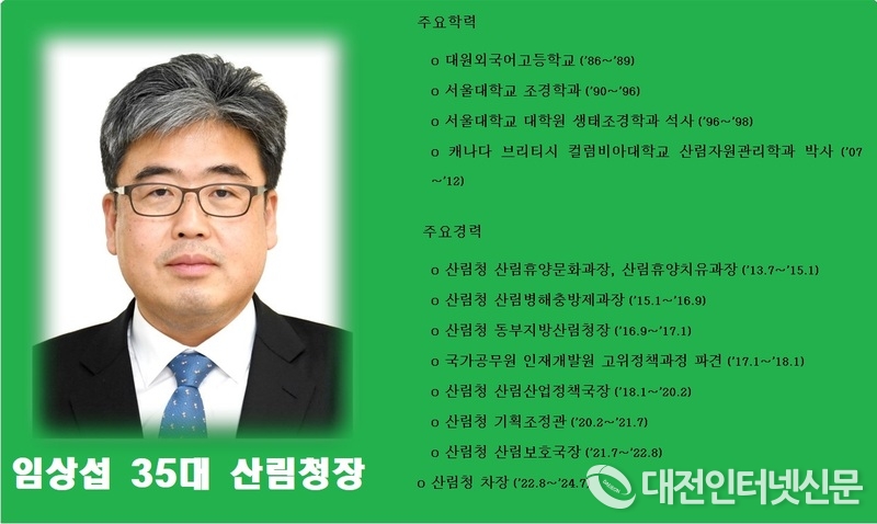 [대전인터넷신문=대전/최대열기자] 제35대 신임 산림청장에 임상섭(54세 70년생, 기술고시 32회) 산림청 차장이 임명됐다.